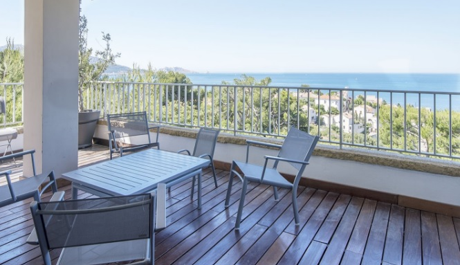 LES ALPILLES Premier ligne 7ème T4 vue mer Aucun vis a vie. Dans une résidence de grand standing sécurisée 24/24 un sublime type 4 de 140 M²r, cuisine séparée, séjour sur terrasse Sud-Ouest, 3 chambres, 1 salle de bains, 1 salle d'eau, . Cave. Piscine. Gardiens. Parkings communs dans la copropriété. RIEN prévoir.. Double garage en sus
